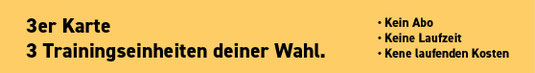 Für 58 € erhältst du bei uns deine Stempelkarte für drei Trainingseinheiten. Perfekt für Schichter und Studenten welche kein festes Abo abschließen möchten. Hier bleibst du maximal flexibel. Natürlich kannst du vorab erst mal schnuppern.